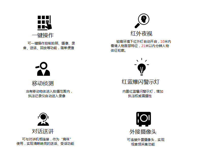 一竞技官网DSJ-200F 执法仪(法院/政府/城管)拍摄像素高达5000万,广角镜头137,拍摄画面精细而全面,大容量电池支持陆续在工作12小时不断电